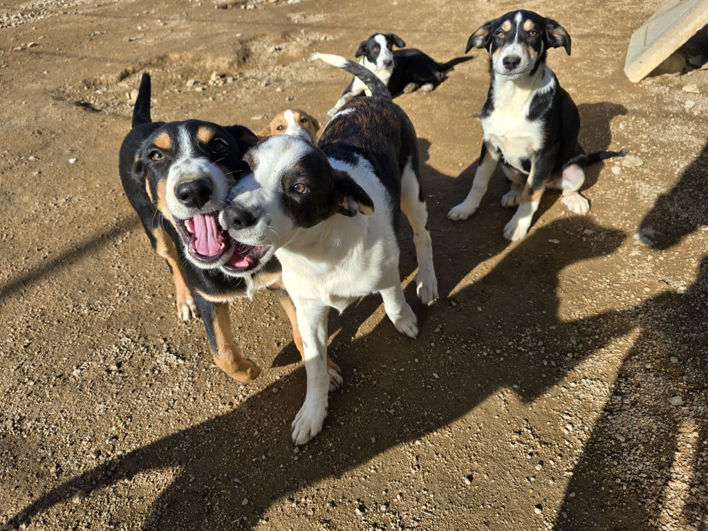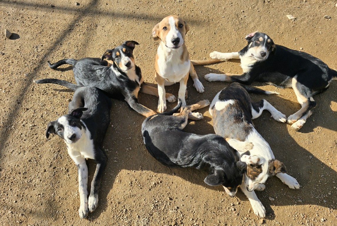 6 kleine Welpen im Nirgendwo – mit ganz vielen Schutzengeln, die dafür sorgten, dass die Menschen, die vorbeigingen, nicht wegsahen, sondern sie zur LIDA, unserem Kooperationstierheim brachten. Hier sind sie in Sicherheit, werden versorgt und wachsen nun zu hübschen Junghunden heran. Es sind „kunterbunte“ Geschwister: von beige bis schwarz ist alles dabei. Sie werden zwischen 50 und 55 cm groß. Es sind 4 Mädchen und 2 Jungs, die jetzt hier auf ihre Familien warten.