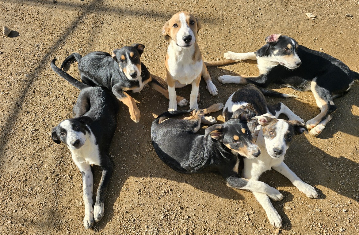 6 kleine Welpen im Nirgendwo – mit ganz vielen Schutzengeln, die dafür sorgten, dass die Menschen, die vorbeigingen, nicht wegsahen, sondern sie zur LIDA, unserem Kooperationstierheim brachten. Hier sind sie in Sicherheit, werden versorgt und wachsen nun zu hübschen Junghunden heran. Es sind „kunterbunte“ Geschwister: von beige bis schwarz ist alles dabei. Sie werden zwischen 50 und 55 cm groß. Es sind 4 Mädchen und 2 Jungs, die jetzt hier auf ihre Familien warten.