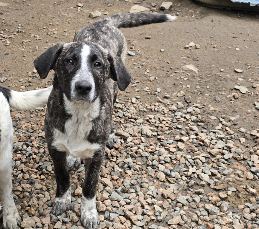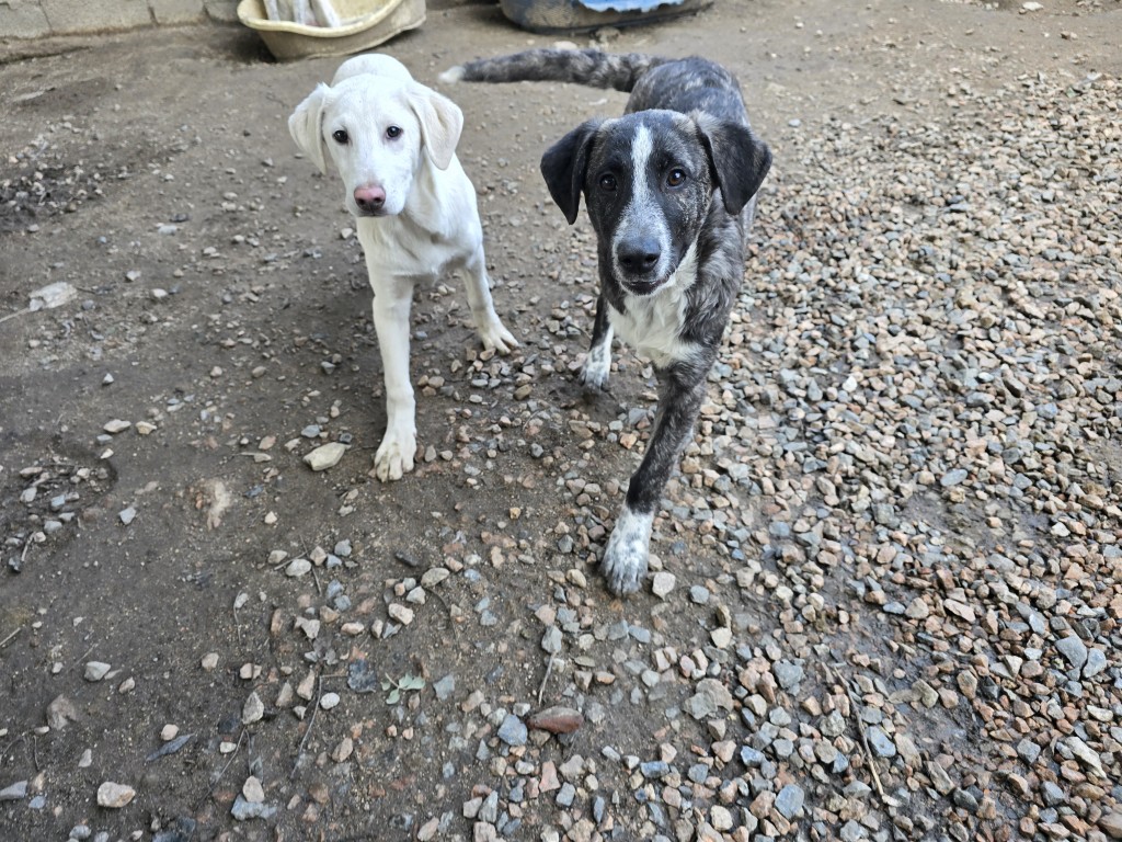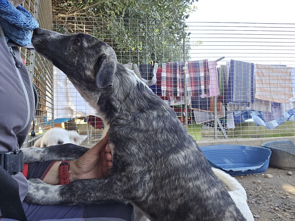Chandra ist eine freundliche, aufgeweckte Hündin. Sie orientiert sich sehr an Cosmo: Was er kann, kann sie auch. Sie zeigt sich sehr verschmust, klettert auf den Schoß und freut sich über jede Aufmerksamkeit. Sie möchte spielen, toben, lernen, alles das, was für Welpen/Junghunde normal ist. Wir hoffen, dass sie auch schnell ihre Familie findet und sie ein Leben ohne Gitter führen kann.
