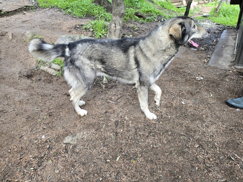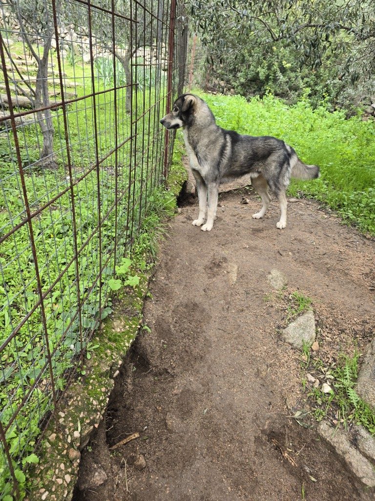 Duke wurde aus schlechter Haltung herausgeholt und in ein privates Rifugio in Italien gebracht. Hier ist er erst einmal sicher, aber er lebt hier ganz allein auf einem Grundstück. Egal, ob Unwetter, Gewitter oder auch Dauerregen – er hat zwar ein trocknes Plätzchen, aber niemanden, der ihm ein wenig Trost spendet. Als wir ihn besuchten, hörten wir ihn schon aus der Ferne weinen.