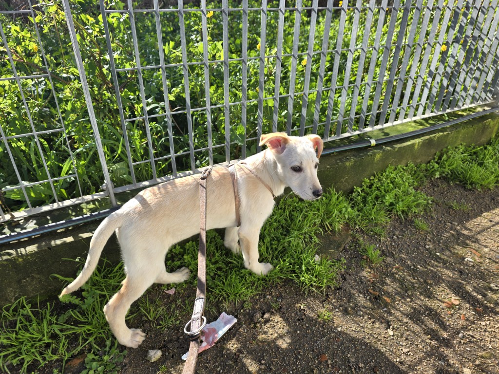 Fiamma und ihre Geschwister Fidor, Festa und Fritz sind das Ergebnis ungewollter Trächtigkeit. Da die Besitzer nicht wussten, wohin mit ihnen, haben wir sie nach der Stillzeit aufgenommen und im Gegenzug die Mama kastriert. Nun leben sie in einem kleinen Welpengehege und zeigen sich sehr aufgeschlossen.