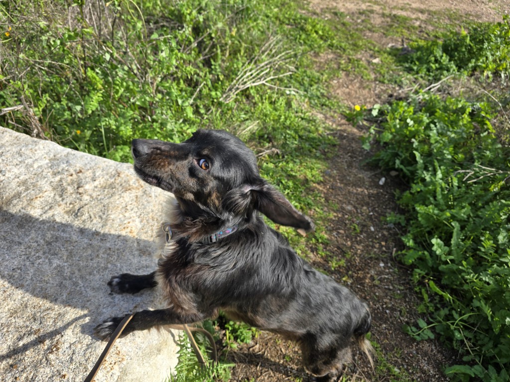 Immo hat wunderschönes Fell bekommen und entpuppt sich als ein aufgewecktes, unbekümmertes Kerlchen. Aufgeregt wartet er in seinem kleinen Käfig auf einen Gassigänger. Leider passiert das nur ein- oder höchstens zweimal am Tag. Wenn er dann draußen ist, weiß er nicht, was er zuerst machen soll: spielen, rennen, kuscheln.