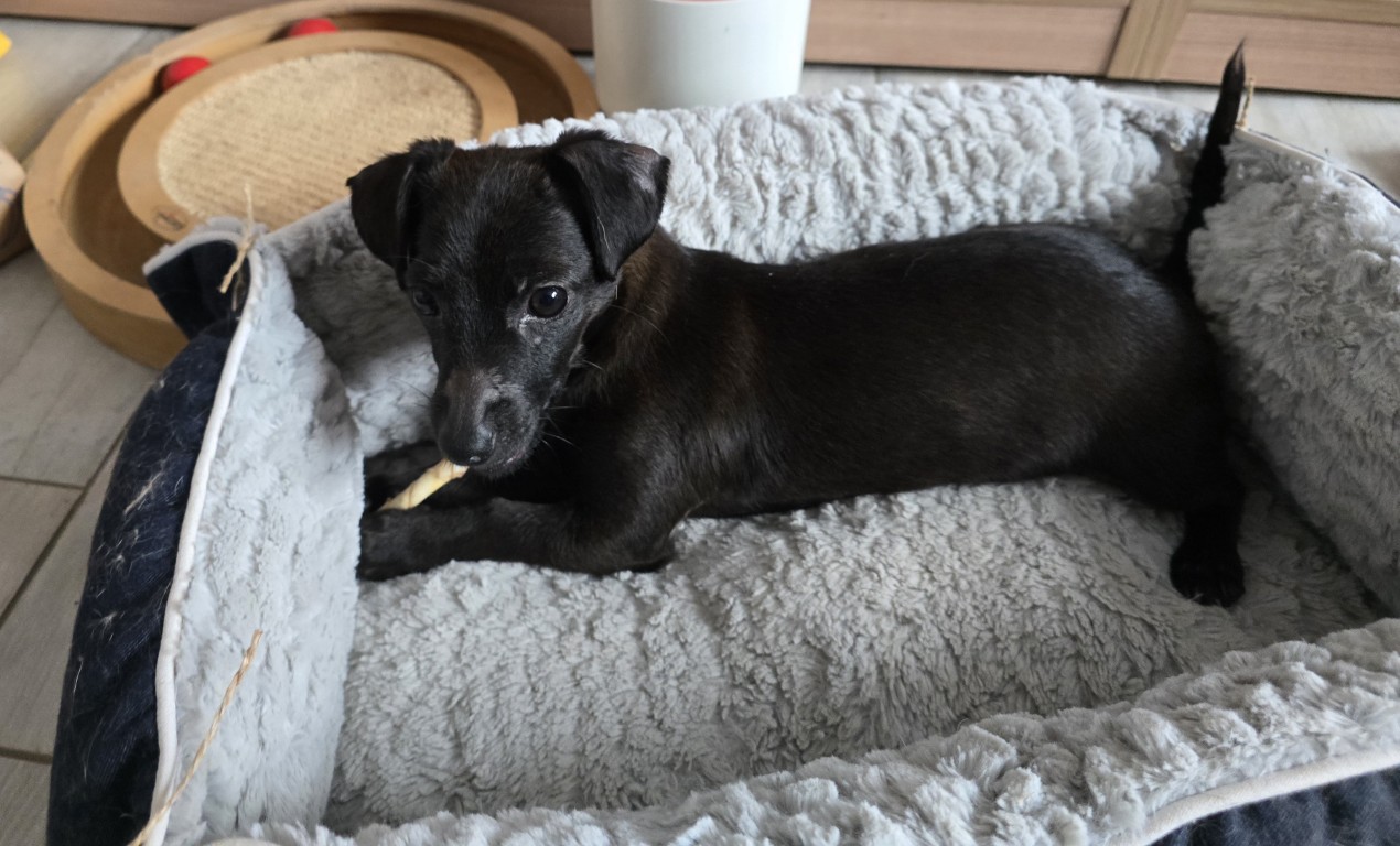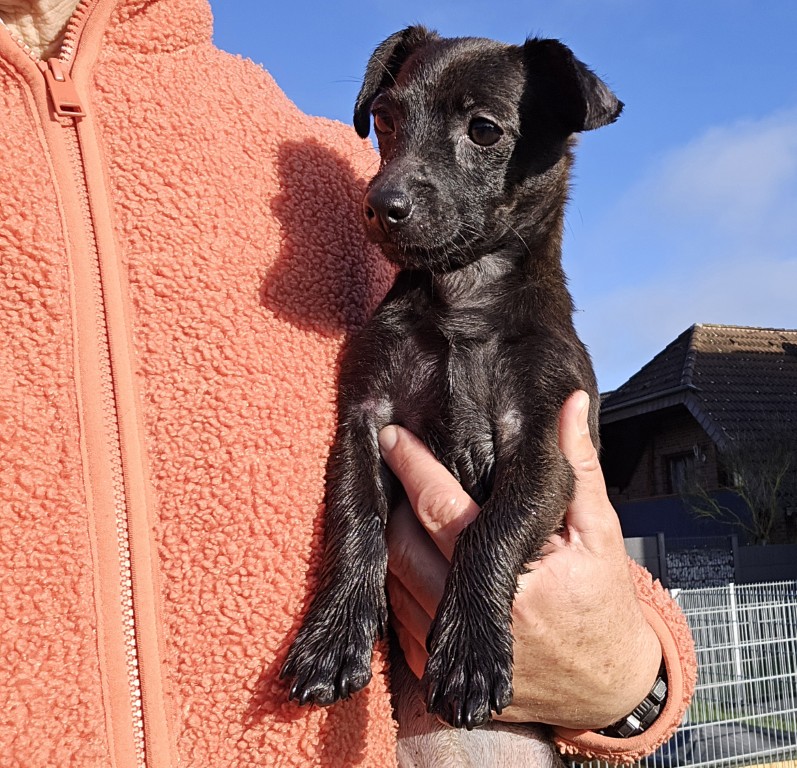 Leni ist eine kleine, ca. 19 cm große Hündin mit dunkelbraun-schwarzem Fell. Wir wissen nicht, welche Rassen in ihr stecken. Sie ist sehr aufgeschlossen und geht offen auf alle Menschen zu. Sie hat keine Ängste, egal ob drinnen oder draußen. Leni geht gut an der Leine, ist sozial mit allen Hunden und auch mit Katzen. Die kleine Maus ist stubenrein und schläft nachts durch.