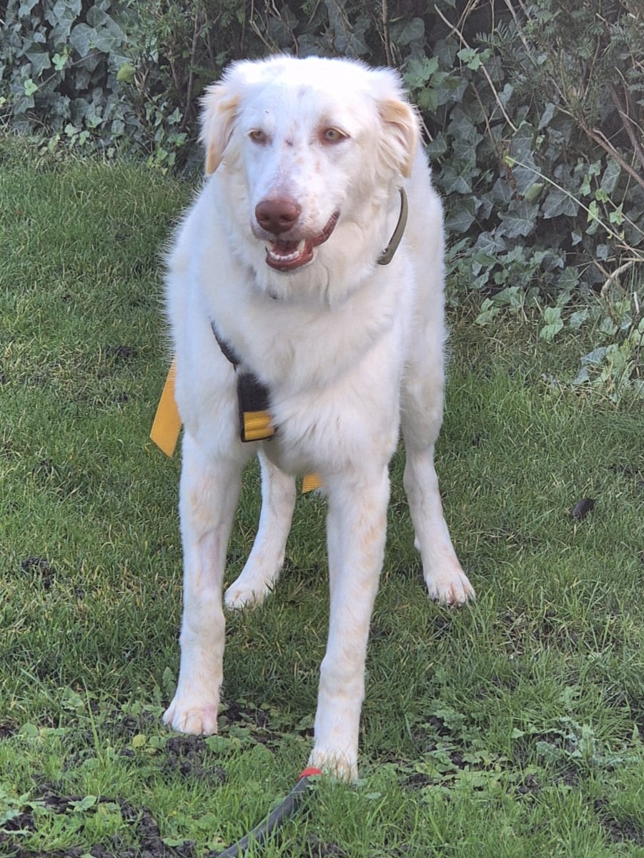 Milo reiste gechipt, geimpft, mit EU Ausweis und Sicherheitsgeschirr in einem beim deutschen Veterinäramt registrierten Transport.