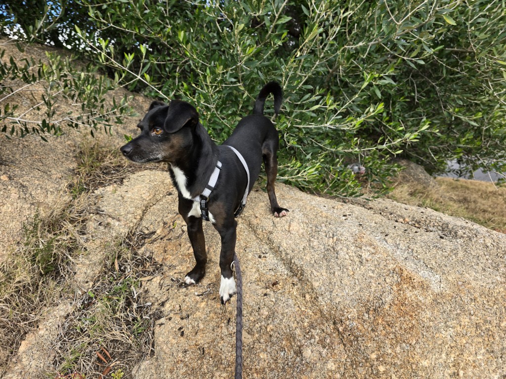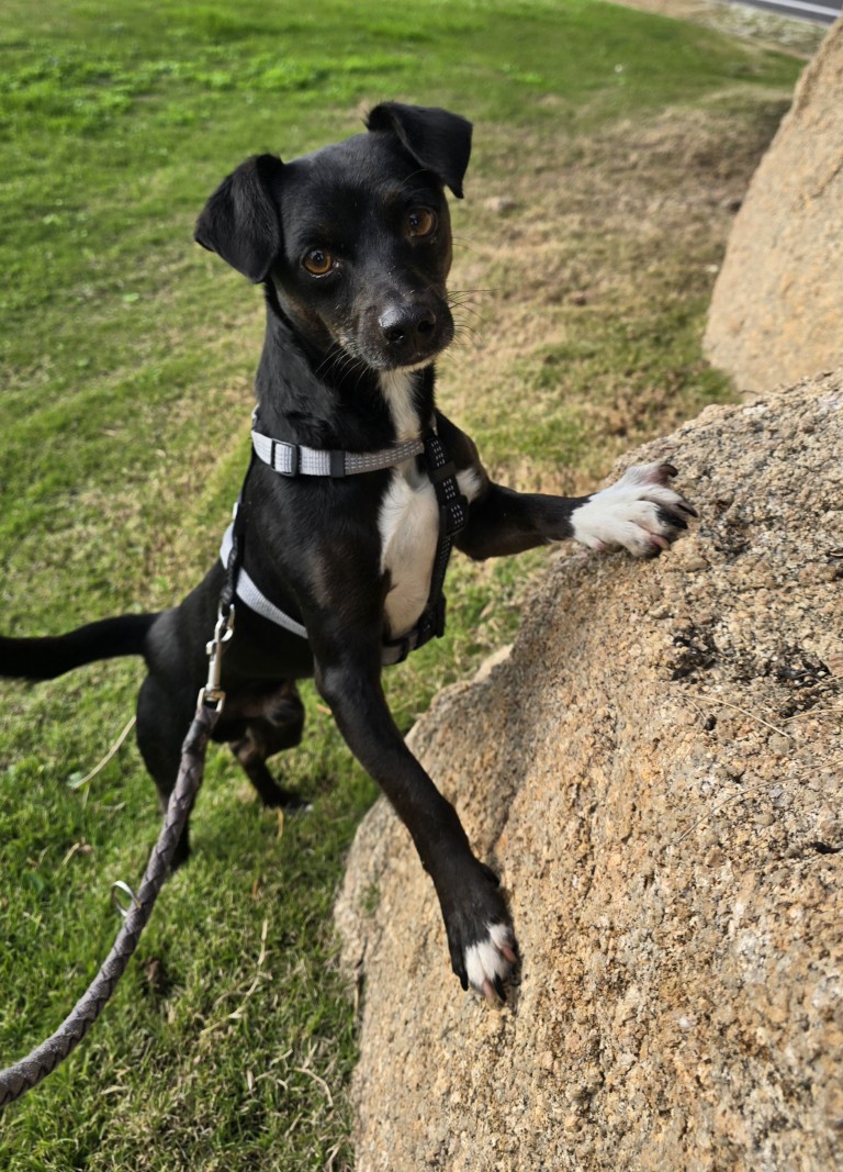 Er ist sehr sozial zu anderen Hunden, geht gut an der Leine und möchte einfach nur alles richtig machen