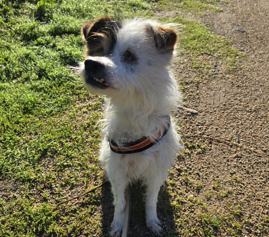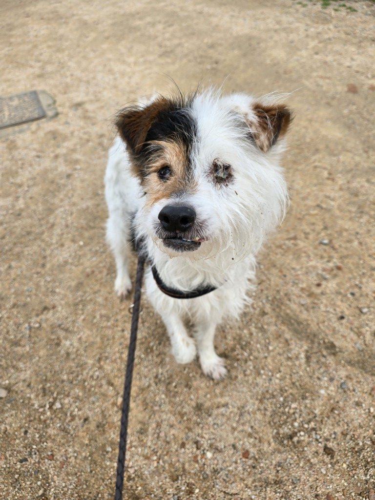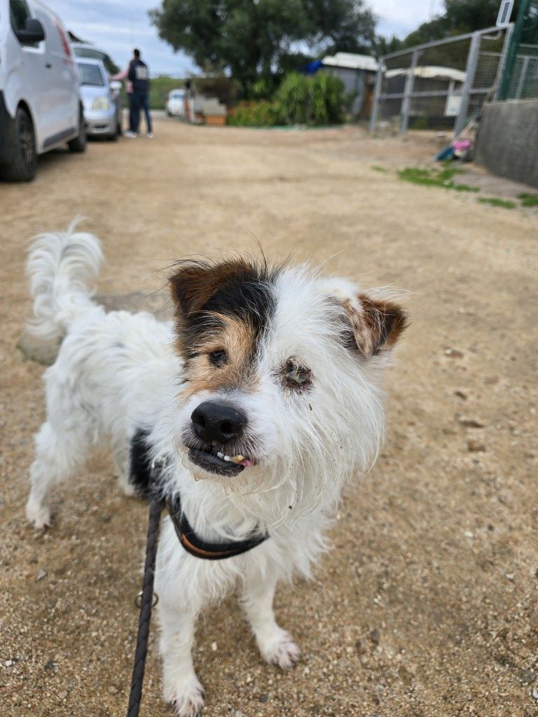 Hier im Tierheim zeigt sich der blinde Opi absolut menschenfreundlich und hundeverträglich. Pippetto kann zwar nichts mehr sehen, aber er sieht mit dem Herzen. Er ist zu allen freundlich, zeigt sich aufgeweckt, mag alle Artgenossen, ist ohne Ängste. Wir wissen nicht, was ihm passiert ist, aber seine Lebensfreude und Aufgeschlossenheit sind unglaublich.